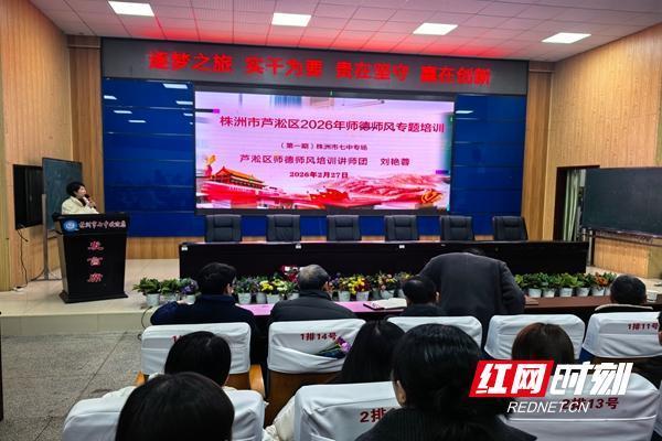红网时刻新闻3月1日讯(通讯员 刘巧玲)2月28日上午,株洲市芦淞区2026年师德师风专题培训(第一期)株洲市七中专场在该校多功能报告厅举行。本次培训以“弘扬教育家精神,细化教师行为规范”为核心主题,采用“现场讲座+分组研讨+自主研修”三位一体的形式,引领全体教师深学细悟、笃行实干,全面提升思想认识,严守师德师风底线。 培训中,芦淞区师德师风讲师团成员、株洲市芦淞区高家坳小学教师刘艳蓉以贴近中学教育教学的真实案例为切入点,深刻阐释教育家精神是滋养日常育人工作的深厚“土壤”。她紧扣《新时代中小学教师职业行为十项准则》,从言行雅正、廉洁自律、关爱学生三个关键维度,细致剖析教师职业底线要求,引导全体教师守住教书育人的“护身符”。刘艳蓉结合鲜活生动的育人实例,将宏大的教育家精神转化为“启智润心”“胸怀天下”“勤学笃行”的具体实践路径,并为在场教师分享“建立边界清单”“修炼情绪暂停”“记录微光时刻”三条实用育人建议,勉励大家以规则守护初心,以情怀潜心育人。专题讲座结束后,全体教师以教研组为单位,开展了“育人实践研讨”。老师们围绕“如何将教育家精神融入日常教育教学,优化师生关系”“教师在教育教学中如何尊重理解学生、公平公正对待每一位学生”两大议题畅所欲言、交流心得,形成了详实的分组研讨记录。后续,全体教师还将结合培训内容自主学习政策法规文件,认真撰写学习心得,推动师德学习入脑入心、落地见效。此次培训内容充实、形式新颖,兼具理论高度与实践温度,为株洲市七中全体教师带来了一场深刻的思想洗礼与专业引领。该校党总支书记刘晚苟表示,学校将以此次专题培训为新起点,持续纵深推进师德师风建设,引导全体教师将教育家精神内化于心、外化于行,以更昂扬的精神状态、更规范的职业言行投身教育教学工作,奋力为芦淞区教育事业高质量发展贡献七中智慧与力量。举报/反馈